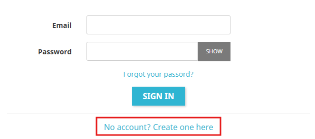 If you don’t already have a user account associated with your email address, you can create a new one by going to the Login page and clicking the link “No account? Create one here ” at the bottom of the page.