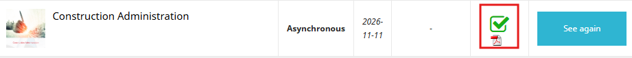 When you complete a training course, you can access your certificate directly from your dashboard and download it as a PDF. Simply go to the My Courses page, accessible from your dashboard. There, you will find the list of your courses and their progress status.