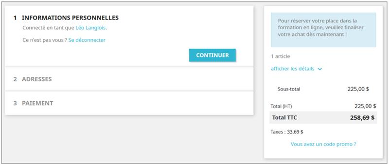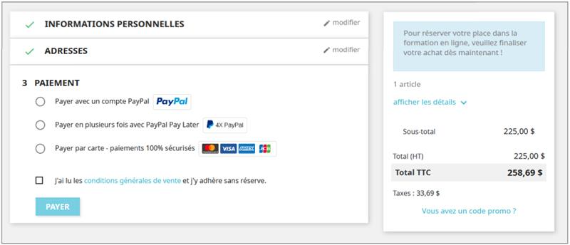 Après avoir ajouté la formation à votre panier, il ne vous reste plus qu'à finaliser votre achat.